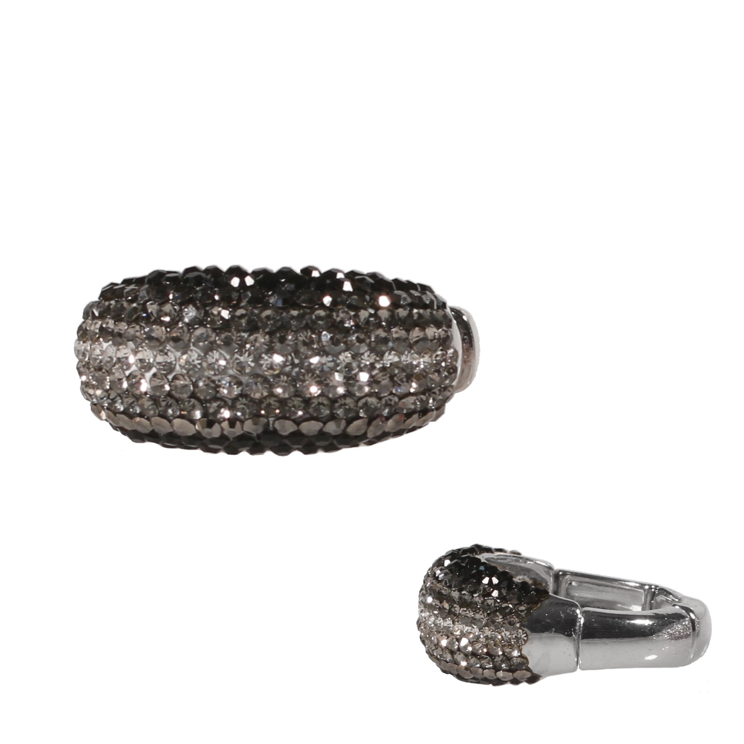 Bague fantaisie en métal argenté et cristaux synthétiques.