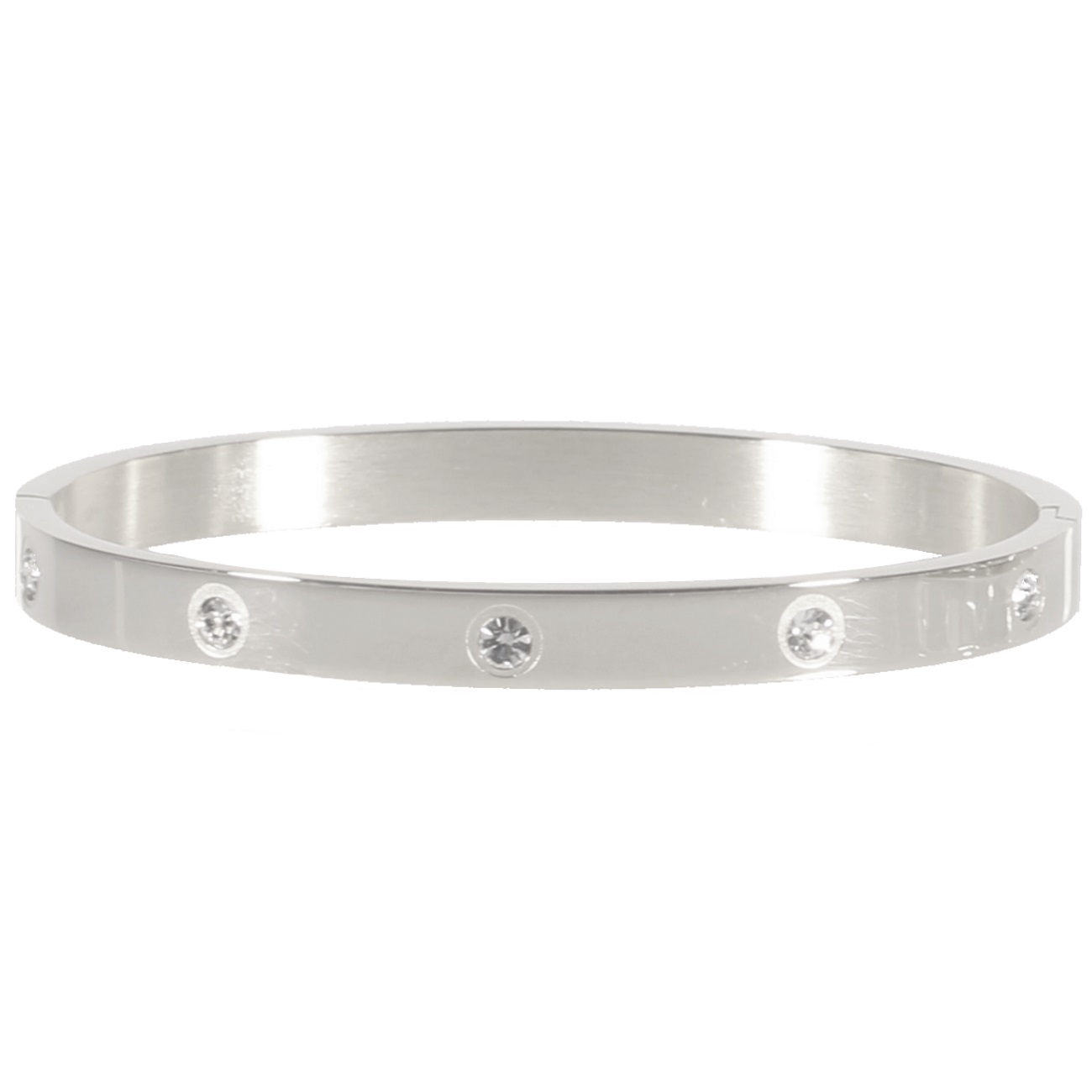 Description Bracelet jonc rigide en acier argenté et cristaux synthétiques. Largeur 6 mm Diamètre 58 mm [Guide des tailles] Matière(s) Acier , Verre . L'acier utilisé dans la bijouterie existe sous plusieurs qualités. Nous utilisons principalement la qualité 316L, qualité qui est utilisée en chirurgie. Cet acier est donc inoxydable et reste très résistant. Fermoir Charnière Couleur(s) dominante(s) Argenté Public Adolescent , Adulte . Genre Femme , Fille . Saison Indémodable . Cliquez sur une matière, un thème, une couleur ou une collection pour voir tous les articles associés.