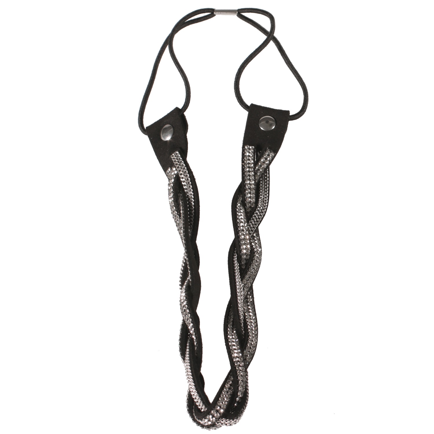 Description Bandeau élastique tressé pour cheveux en textile, suédine, métal argenté et cristaux synthétiques. Cliquez sur une matière, un thème, une couleur ou une collection pour voir tous les articles associés.