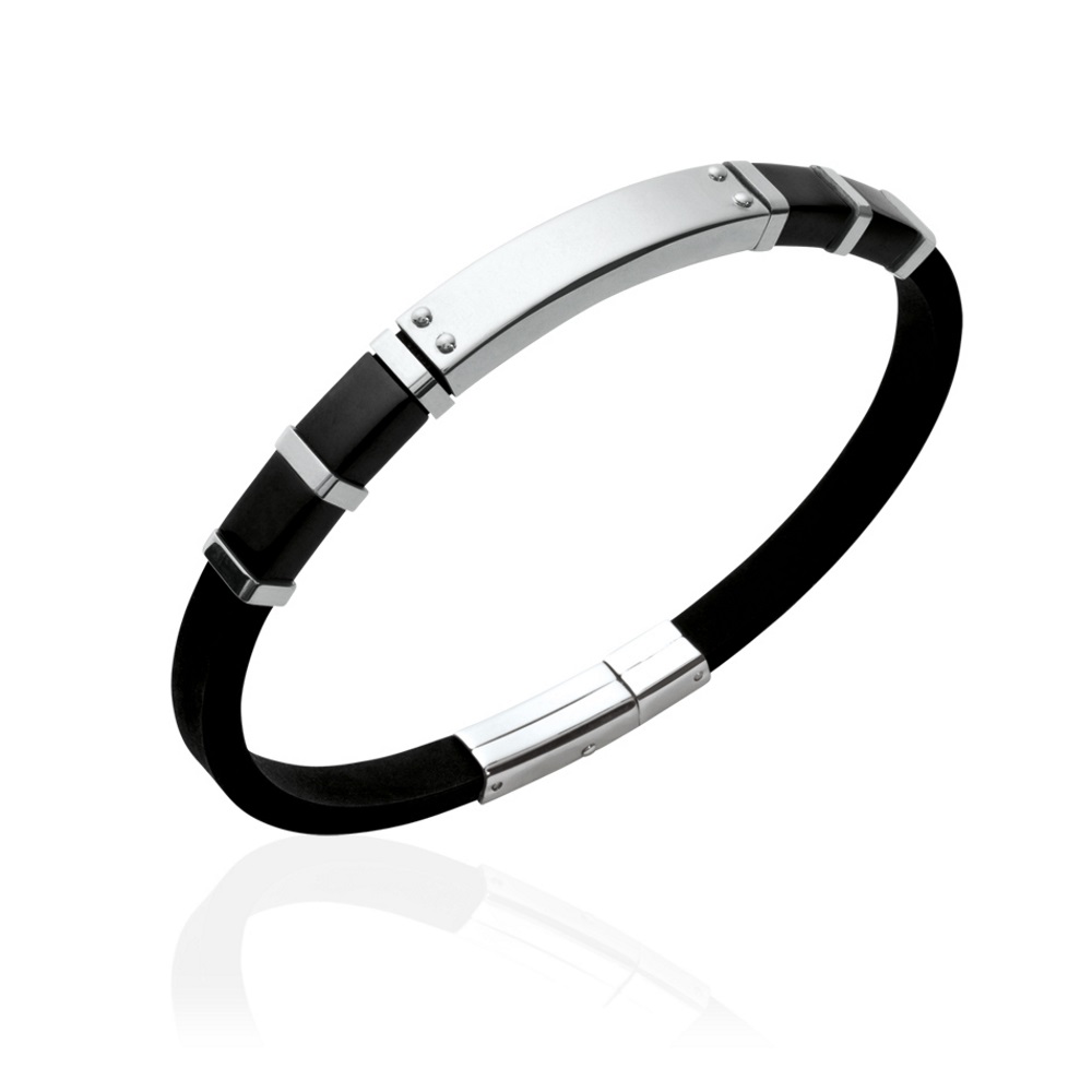 Bracelet pour hommes en acier argenté et polyuréthane.