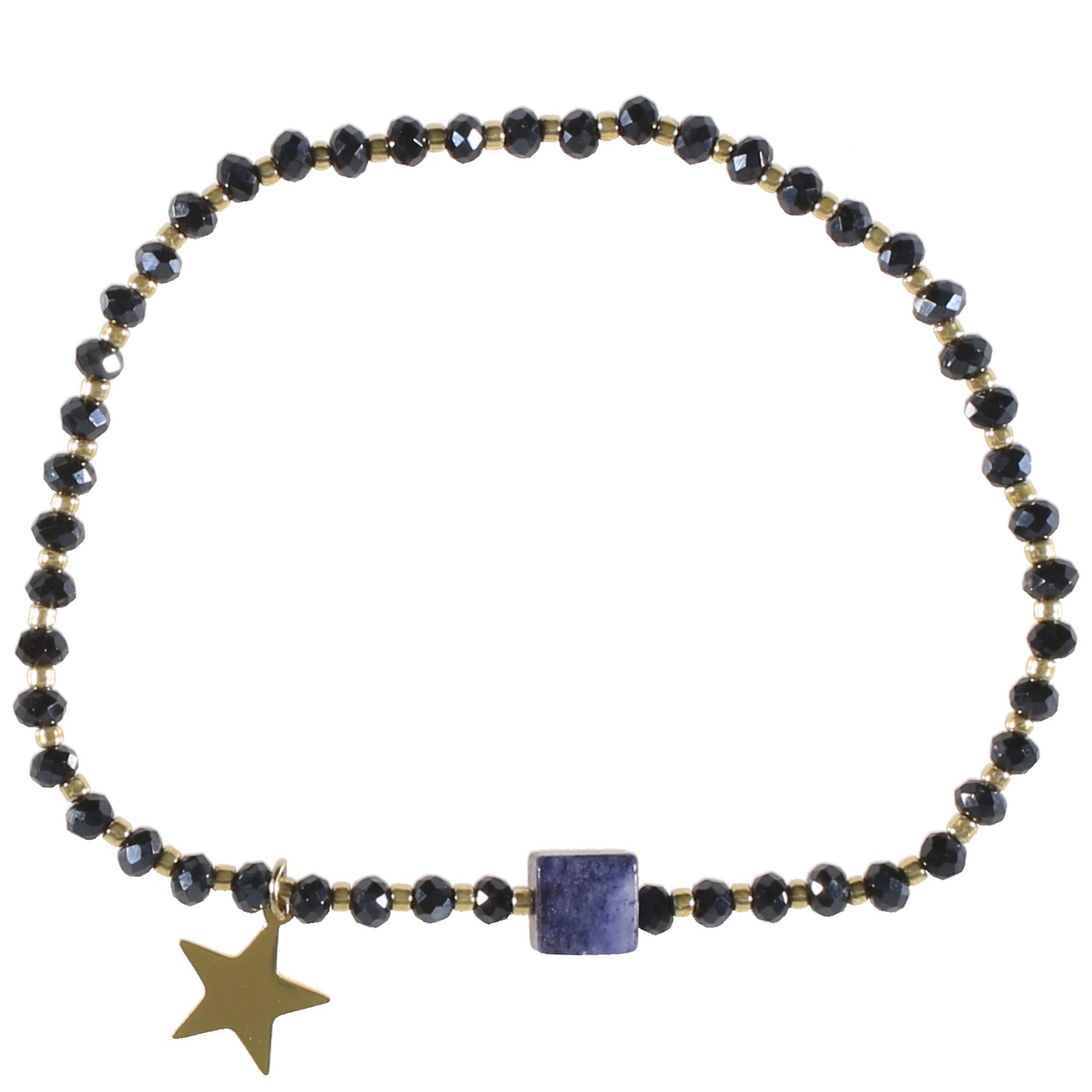 Bracelet élastique avec perles et étoile en acier doré, perles de couleur et pierre cube.