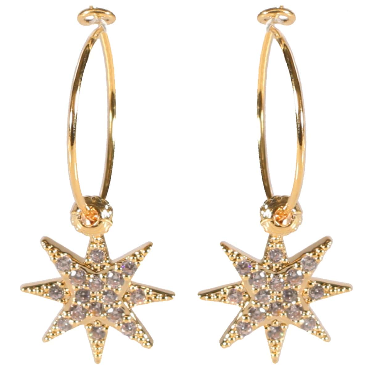 Boucles d'oreilles créoles en métal doré plaquage supérieur et étoile avec strass en oxydes de zirconium.