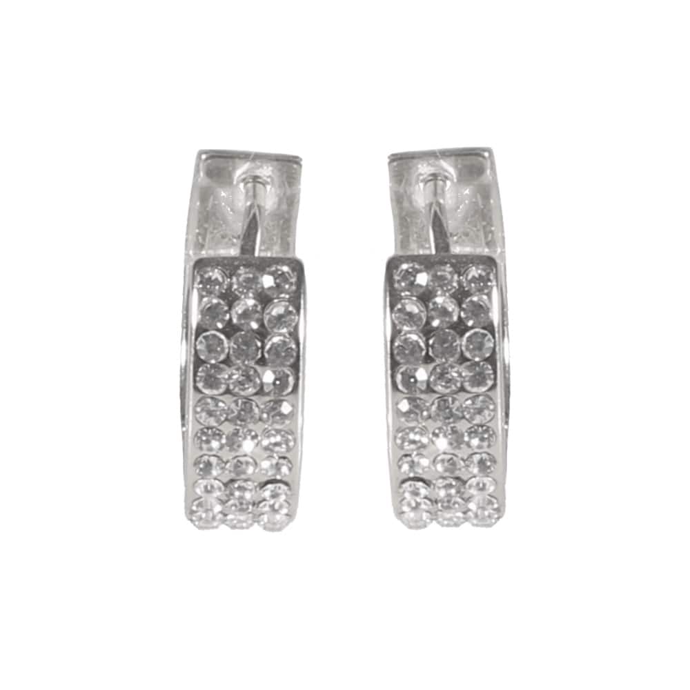 Description Boucles d'oreilles créoles fantaisie en métal argenté et strass en verre. Cliquez sur une matière, un thème, une couleur ou une collection pour voir tous les articles associés.