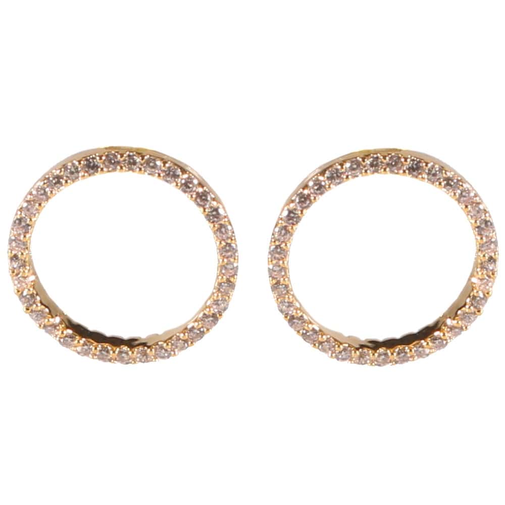 Boucles d'oreilles fantaisie cercles en métal doré de plaquage supérieur et strass en oxydes de zirconium.