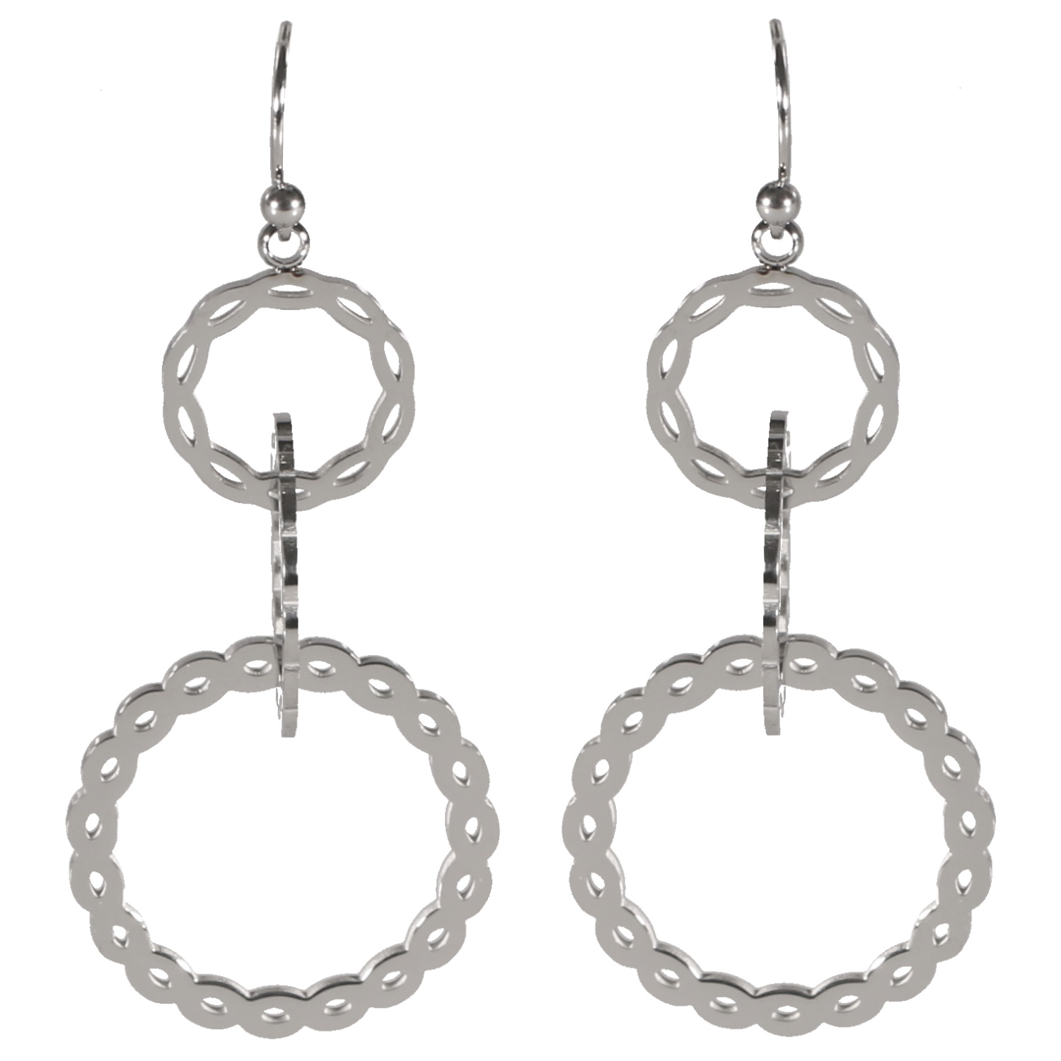 Description Boucles d'oreilles pendantes composées de trois cercles entrelacées en acier argenté. Largeur 25 mm Hauteur 60 mm Matière(s) Acier . L'acier utilisé dans la bijouterie existe sous plusieurs qualités. Nous utilisons principalement la qualité 316L, qualité qui est utilisée en chirurgie. Cet acier est donc inoxydable et reste très résistant. Fermoir Crochets Couleur(s) dominante(s) Argenté Public Adolescent , Adulte . Genre Femme , Fille . Saison Indémodable . Cliquez sur une matière, un thème, une couleur ou une collection pour voir tous les articles associés.