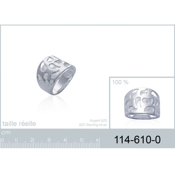 Description Bague en argent 925/000. Matière(s) Argent 925 . Les bijoux en argent que nous vous proposons sont faits d'argent 925/000. C'est-à-dire que chaque gramme de métal est composé de 92.5% d'argent pur et de 7.5 % d'autres métaux (essentiellement du cuivre). En effet, sous sa forme pure (soit 100%), l'argent est trop mou et ne peut être suffisamment rigide pour tenir sous forme de bijou. Nous le mêlons donc à d'autres métaux. Nous apposons un poinçon 925 sur tous nos bijoux afin de vous garantir que chaque création est bien en argent 925. Poids d'argent 9,41 gramme(s) Couleur(s) dominante(s) Argenté Public Adulte . Genre Femme . Saison Indémodable . Cliquez sur une matière, un thème, une couleur ou une collection pour voir tous les articles associés.