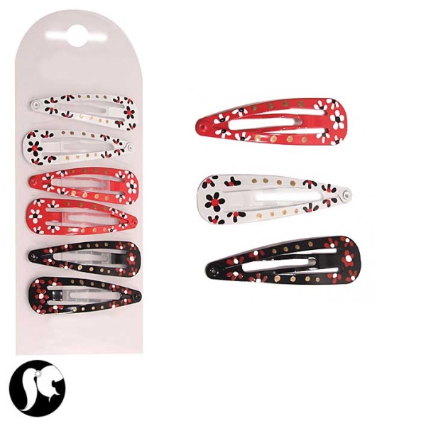 Carte comprenant 3 paires de clic-clacs en métal argenté et émail de couleur. Lot  Adulte Enfant Femme Fleurs Hiver Fille