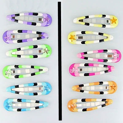 Carte comprenant 3 paires de clic-clacs en métal argenté et émail de couleur.