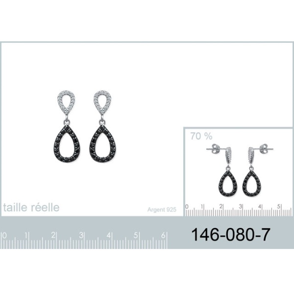 Boucles d'oreilles en argent 925/000 rhodié, oxyde de zirconium et pierres synthétiques.