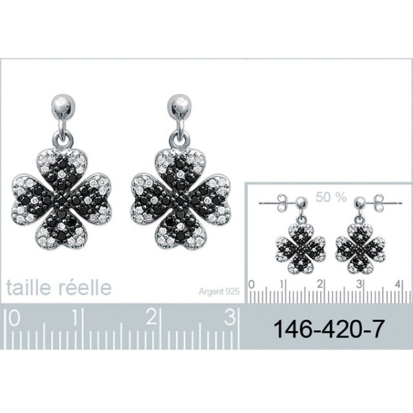 Boucles d'oreilles en argent 925/000 rhodié et pierres synthétiques.
