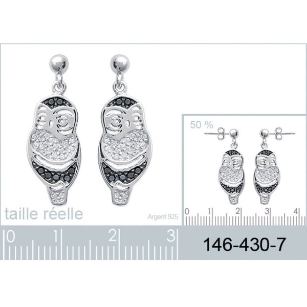 Boucles d'oreilles en argent 925/000 rhodié et pierres synthétiques.