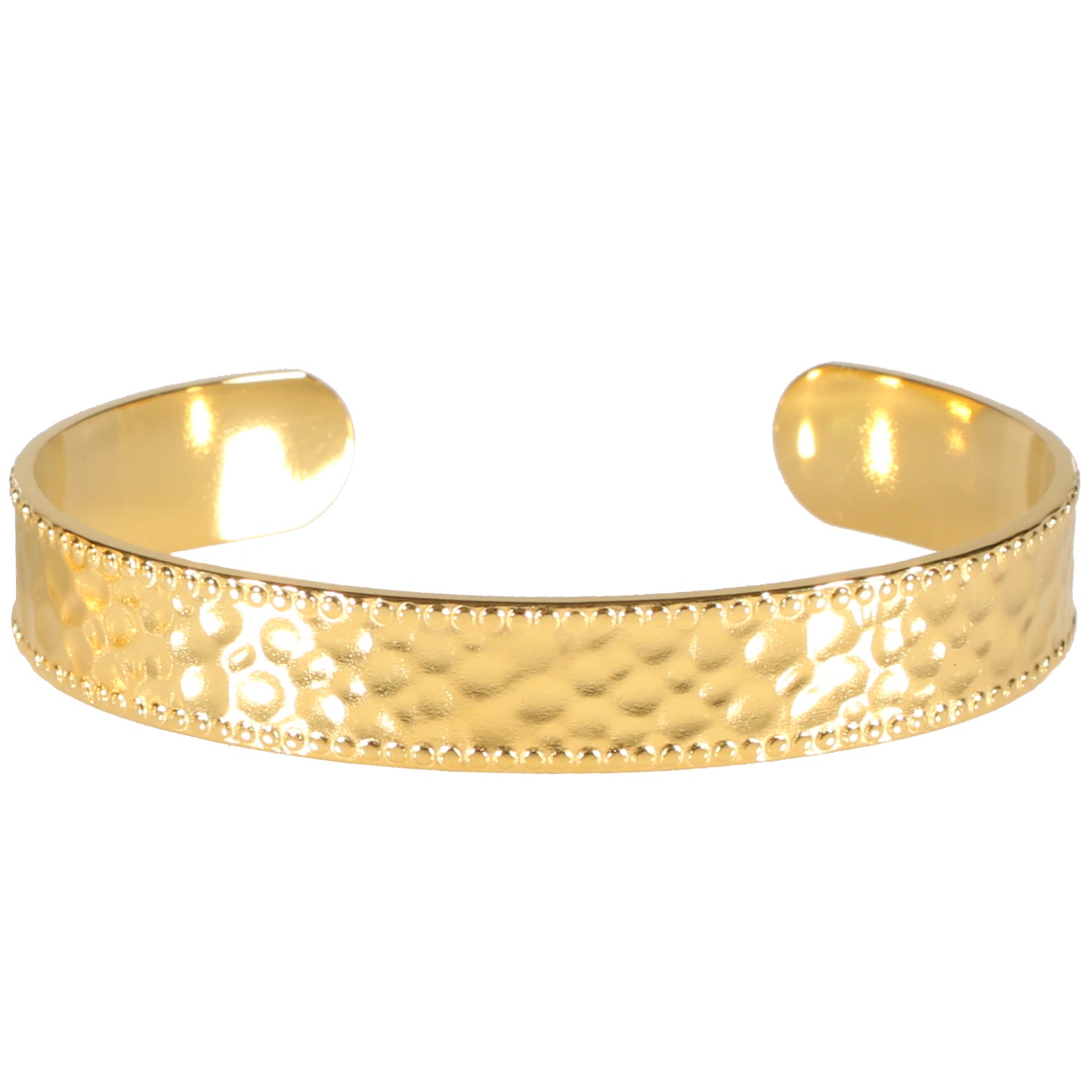 Description Bracelet jonc rigide martelé en acier doré. Largeur 10 mm Diamètre 58 mm [Guide des tailles] Matière(s) Acier . L'acier utilisé dans la bijouterie existe sous plusieurs qualités. Nous utilisons principalement la qualité 316L, qualité qui est utilisée en chirurgie. Cet acier est donc inoxydable et reste très résistant. Fermoir Aucun Couleur(s) dominante(s) Doré Public Adolescent , Adulte . Genre Femme , Fille . Saison Indémodable . Collection Reflets Cliquez sur une matière, un thème, une couleur ou une collection pour voir tous les articles associés.