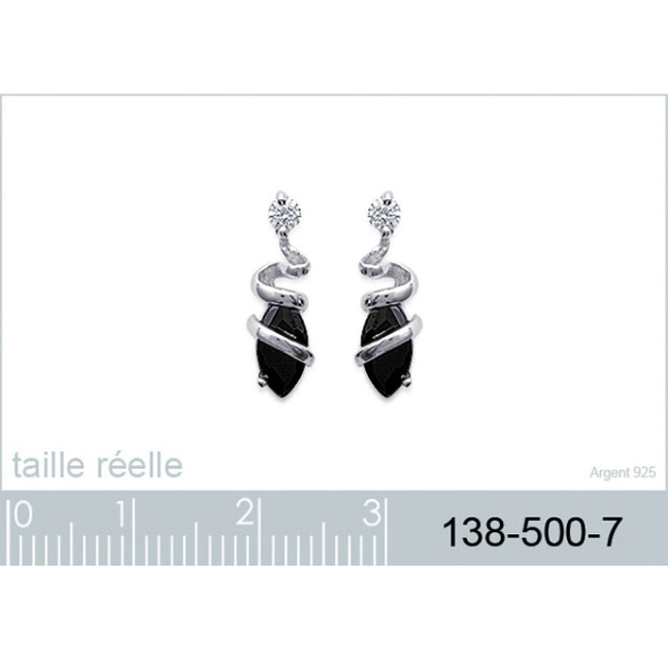Boucles d'oreilles en argent 925/000 rhodié, oxyde de zirconium et pierre synthétique.
