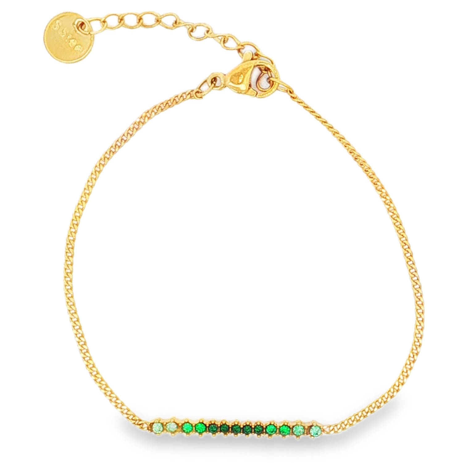 Description Ce somptueux bracelet chaîne en acier doré se distingue par son élégance contemporaine. La monture raffinée met en valeur un pavage de strass de taille brillant, offrant une couleur verte éclatante et une clarté exceptionnelle. Une pièce sophistiquée alliant design moderne et prestige des pierres fines, idéale pour rehausser n'importe quelle tenue avec distinction. Fermoir mousqueton avec 3 cm de rallonge.