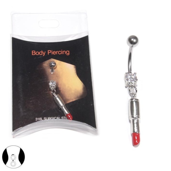 Piercing en acier chirurgical 316L et cristal.<br/>Rouge à lèvres. Lèvres  Adulte Femme Indémodable Symboles