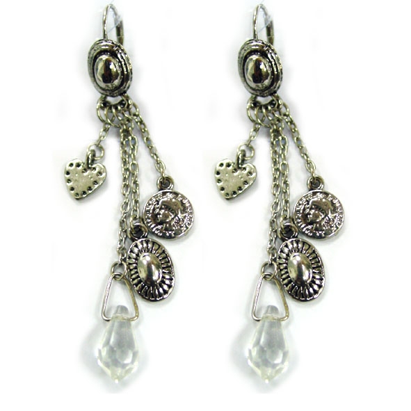 Boucles d'oreilles fantaisie en métal argenté vieilli et matières mélangées.