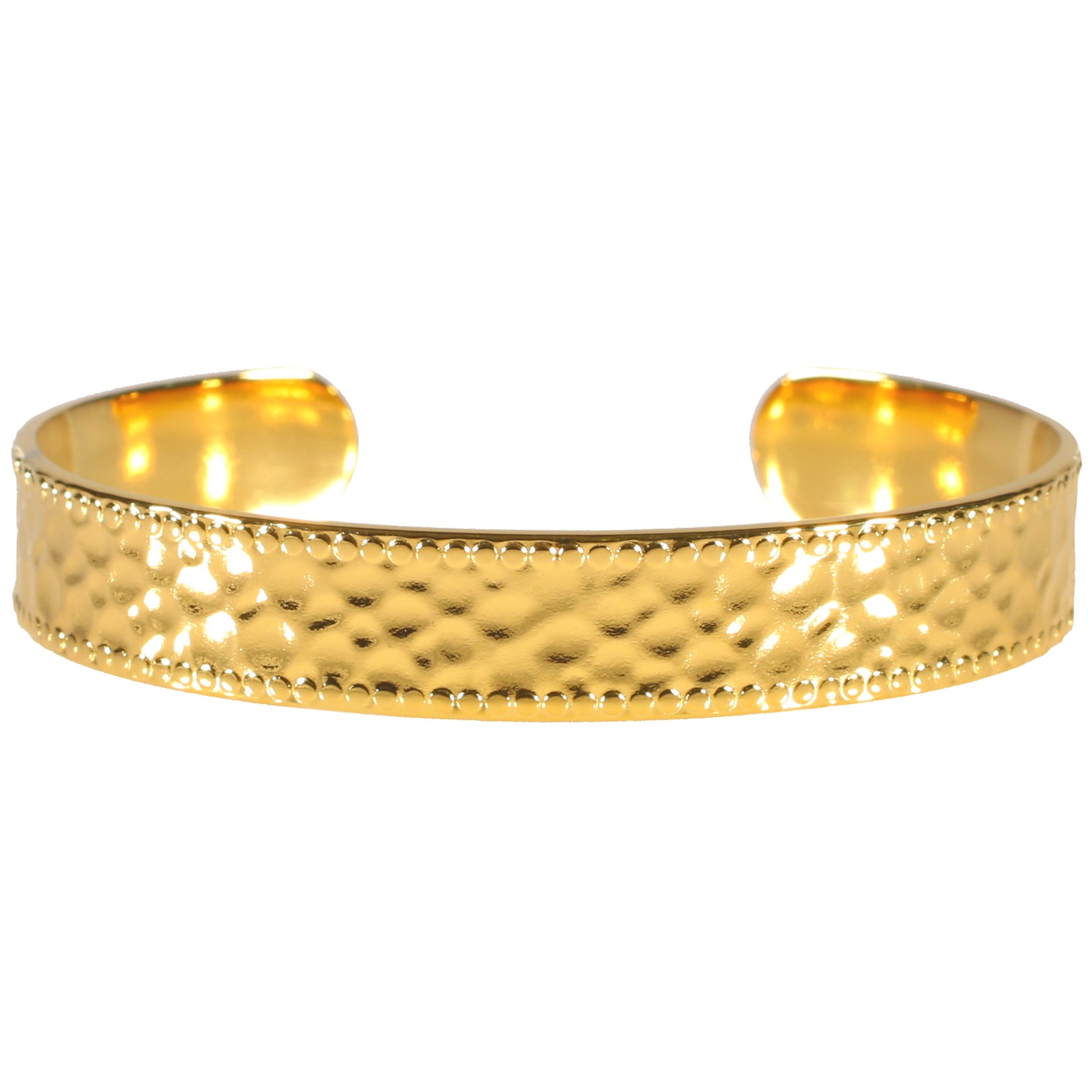 Description Bracelet jonc ouvert avec effets reflets en acier doré. Largeur 10 mm Diamètre 60 mm [Guide des tailles] Matière(s) Acier . L'acier utilisé dans la bijouterie existe sous plusieurs qualités. Nous utilisons principalement la qualité 316L, qualité qui est utilisée en chirurgie. Cet acier est donc inoxydable et reste très résistant. Fermoir Aucun Couleur(s) dominante(s) Doré Public Adolescent , Adulte . Genre Femme , Fille . Saison Indémodable . Collection Reflets Cliquez sur une matière, un thème, une couleur ou une collection pour voir tous les articles associés.