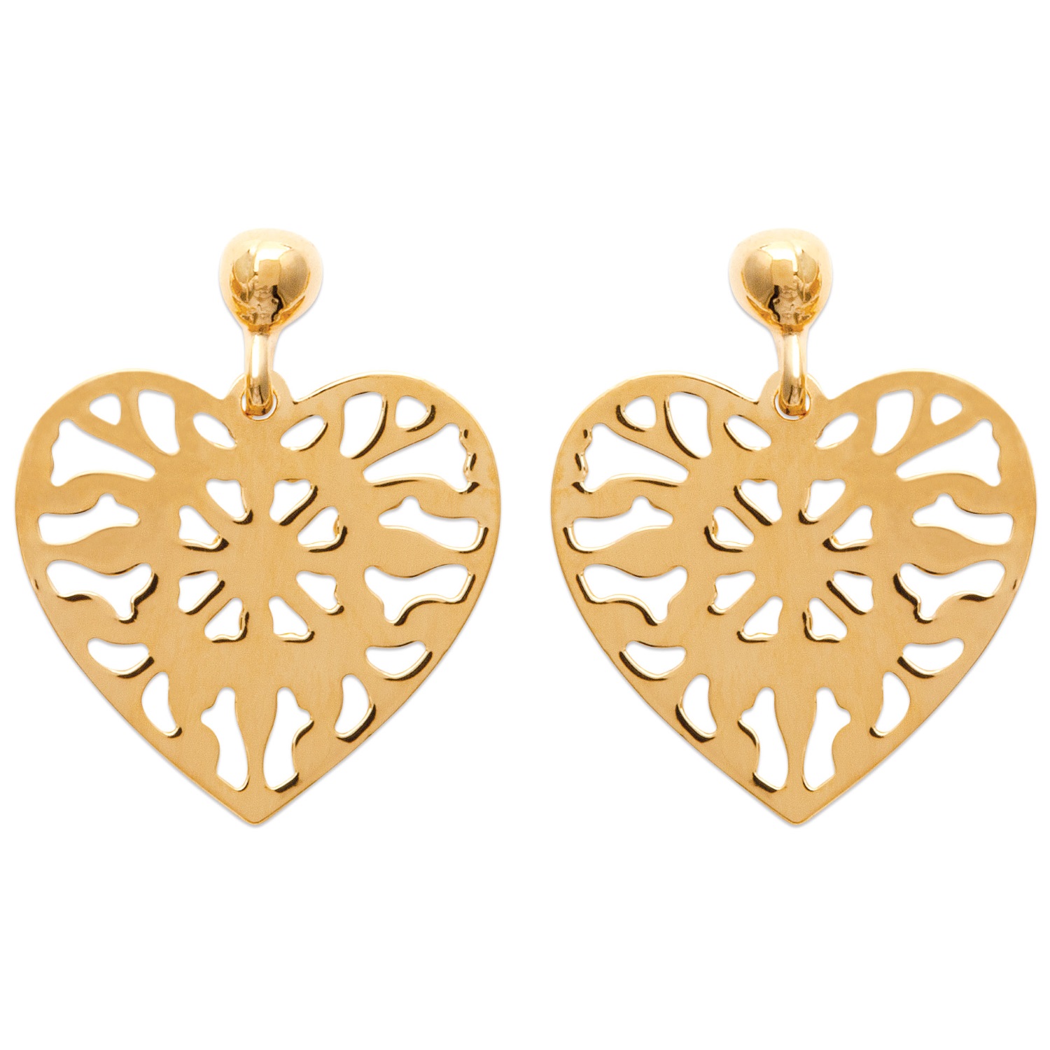 Description Boucles d'oreilles en plaqué-or. Largeur 15 mm Hauteur 18 mm Matière(s) Plaqué or . Nos bijoux en plaqué or sont faits sur une base de laiton et recouverts d'or 18 carats à 3 microns sans dispersion. Cela signifie que nous garantissons 3 microns d'or sur n'importe quelle partie du bijou. Sur la plupart de nos bijoux empierrés, nous montons à 5 microns d'or 18 carats. Pour finir, nous faisons également une finition avec de l'or 24 carats afin de donner un plus bel éclat à nos bijoux. Fermoir Tiges poussettes Couleur(s) dominante(s) Doré Public Adulte . Genre Femme . Saison Indémodable . Thème(s) Amour . Cliquez sur une matière, un thème, une couleur ou une collection pour voir tous les articles associés.