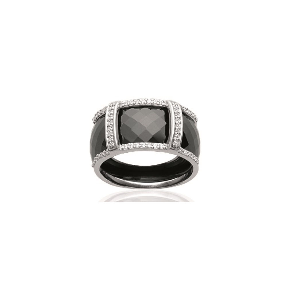 Bague en argent 925/000 rhodié, oxyde de zirconium et céramique noire.