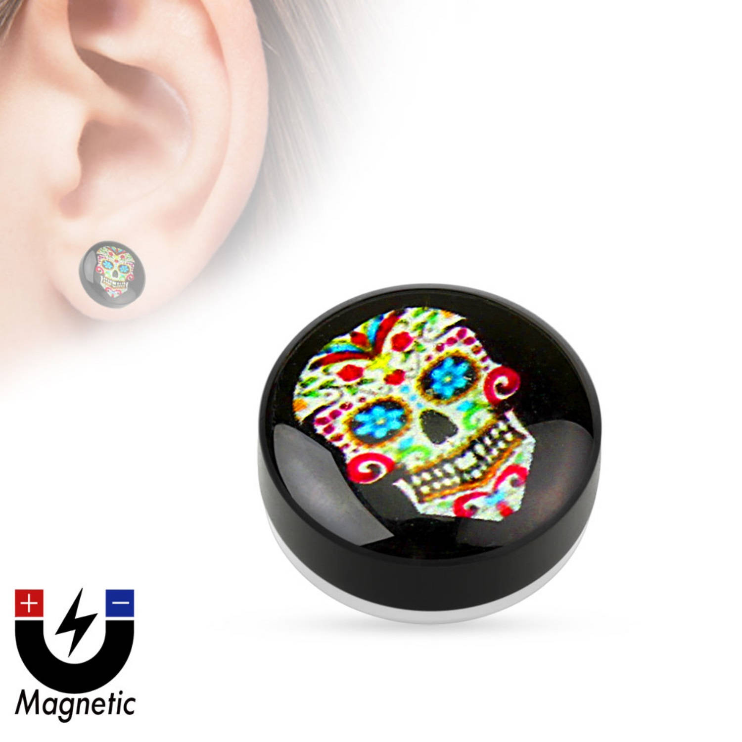 Boucle d'oreilles tête de mort calavera en acier et émail. Rond Tête de mort  Adolescent Adulte Femme Fille Homme Indémodable Mixte Personnage