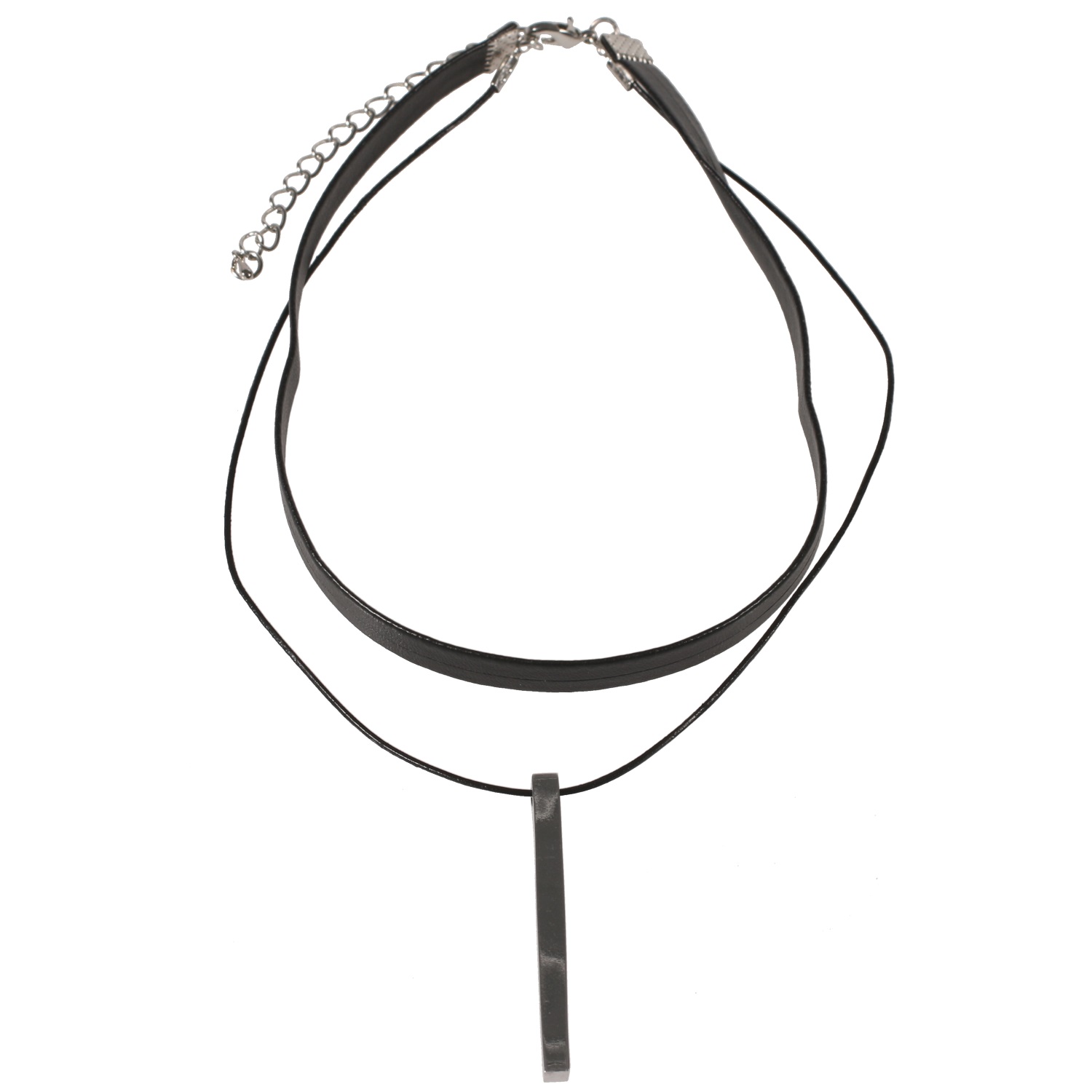 Collier ras de cou fantaisie en métal argenté et polyuréthane.