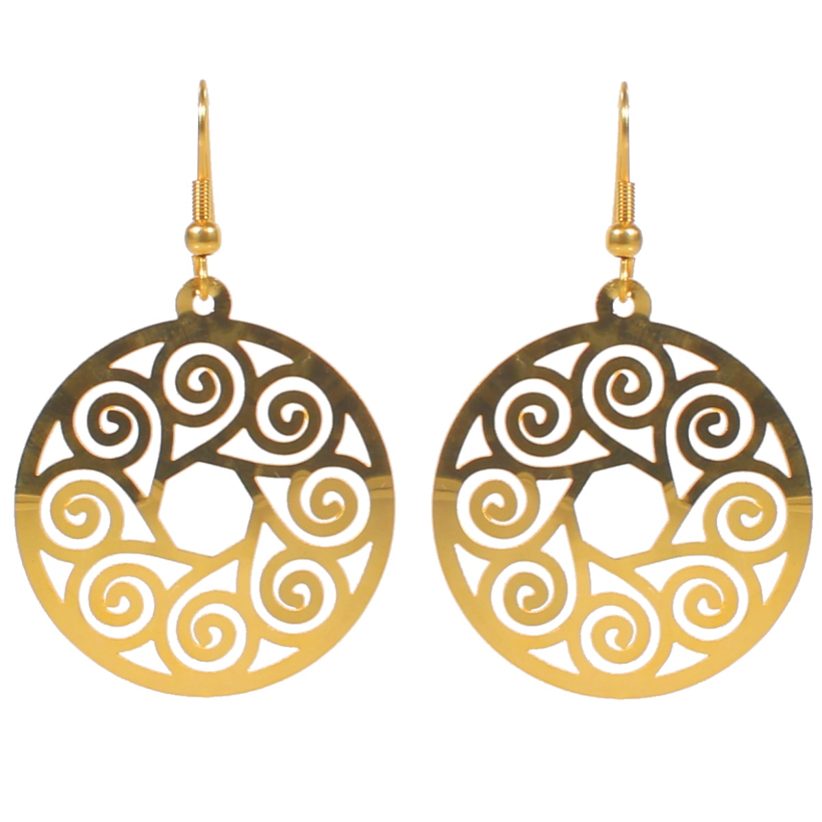 Description Boucles d'oreilles en acier. Largeur 33 mm Hauteur 54 mm Matière(s) Acier . L'acier utilisé dans la bijouterie existe sous plusieurs qualités. Nous utilisons principalement la qualité 316L, qualité qui est utilisée en chirurgie. Cet acier est donc inoxydable et reste très résistant. Fermoir Crochets Couleur(s) dominante(s) Doré Public Adolescent , Adulte . Genre Femme , Fille . Saison Indémodable . Cliquez sur une matière, un thème, une couleur ou une collection pour voir tous les articles associés.