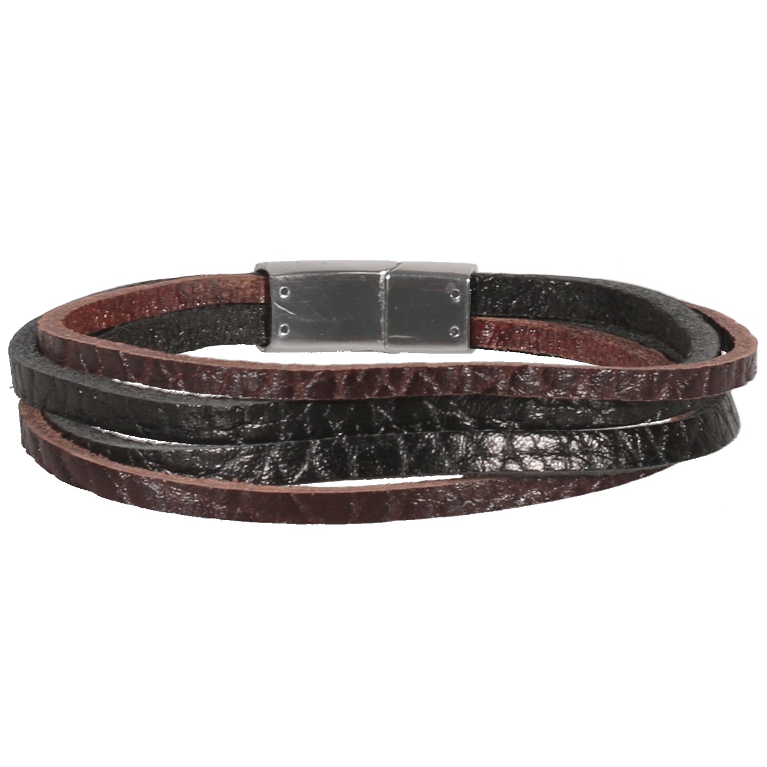 Bracelet pour homme multi rangs en acier argenté et cuir.<br/>4 rangs. Multirangs  Adolescent Adulte Garçon Homme Indémodable