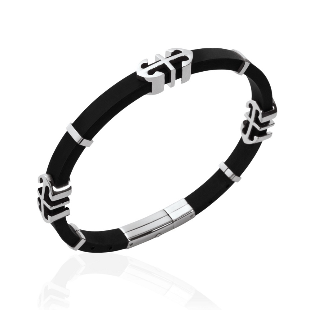 Bracelet pour hommes Ancres en acier argenté et polyuréthane.