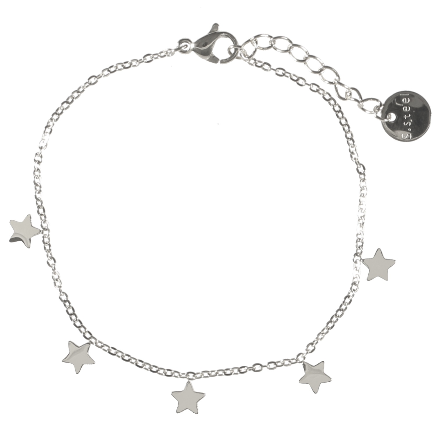 Description Bracelet avec étoiles pendantes en acier argenté. Cliquez sur une matière, un thème, une couleur ou une collection pour voir tous les articles associés.