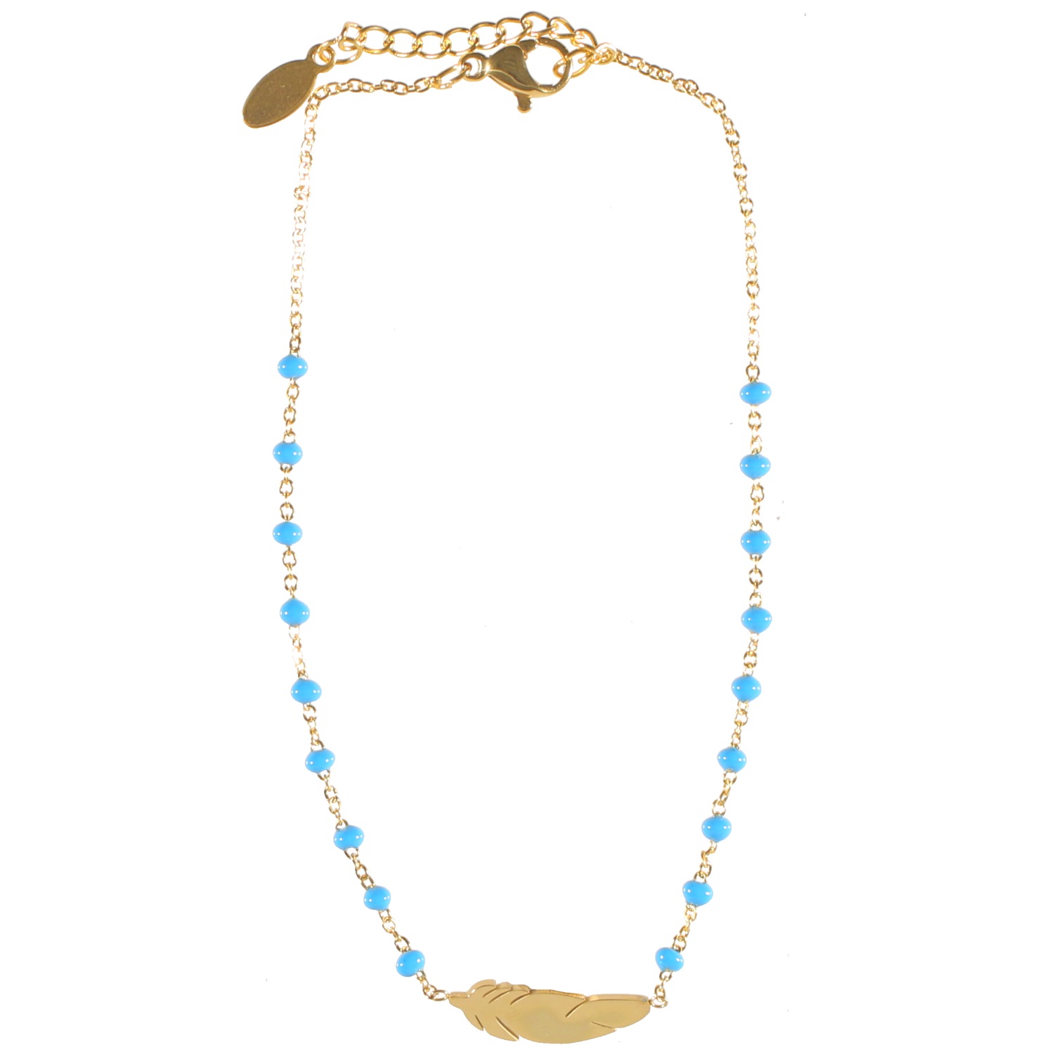 Description Chaîne de cheville avec plume en acier 316L doré et perles de couleur en émail. Cliquez sur une matière, un thème, une couleur ou une collection pour voir tous les articles associés.