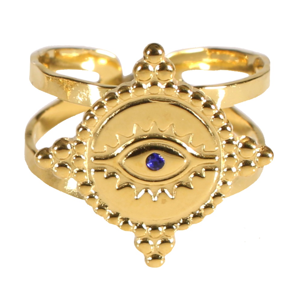 Description Bague œil de Turquie en acier doré et un cristal de couleur bleue. Largeur 18 mm Matière(s) Acier , Verre . L'acier utilisé dans la bijouterie existe sous plusieurs qualités. Nous utilisons principalement la qualité 316L, qualité qui est utilisée en chirurgie. Cet acier est donc inoxydable et reste très résistant. À noter Taille ajustable Couleur(s) dominante(s) Bleu , Doré Public Adolescent , Adulte . Genre Femme , Fille . Saison Indémodable . Thème(s) Symboles . Cliquez sur une matière, un thème, une couleur ou une collection pour voir tous les articles associés.