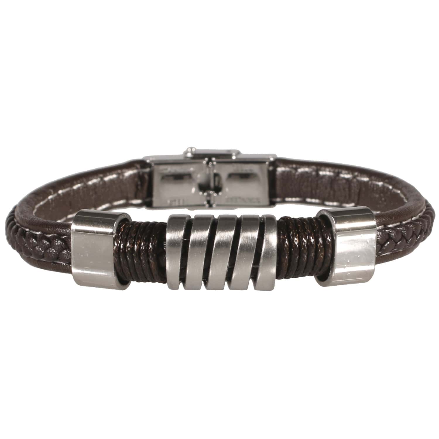 Description Bracelet pour homme en acier argenté et cuir de couleur marron. Cliquez sur une matière, un thème, une couleur ou une collection pour voir tous les articles associés.