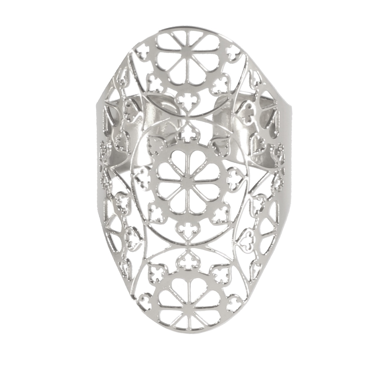 Description Bague de forme ovale avec motifs ajourés en acier argenté. Taille ajustable. Largeur 20 mm Hauteur 30 mm Matière(s) Acier . L'acier utilisé dans la bijouterie existe sous plusieurs qualités. Nous utilisons principalement la qualité 316L, qualité qui est utilisée en chirurgie. Cet acier est donc inoxydable et reste très résistant. Fermoir Aucun À noter Taille ajustable Couleur(s) dominante(s) Argenté Public Adolescent , Adulte . Genre Femme , Fille . Saison Indémodable . Cliquez sur une matière, un thème, une couleur ou une collection pour voir tous les articles associés.