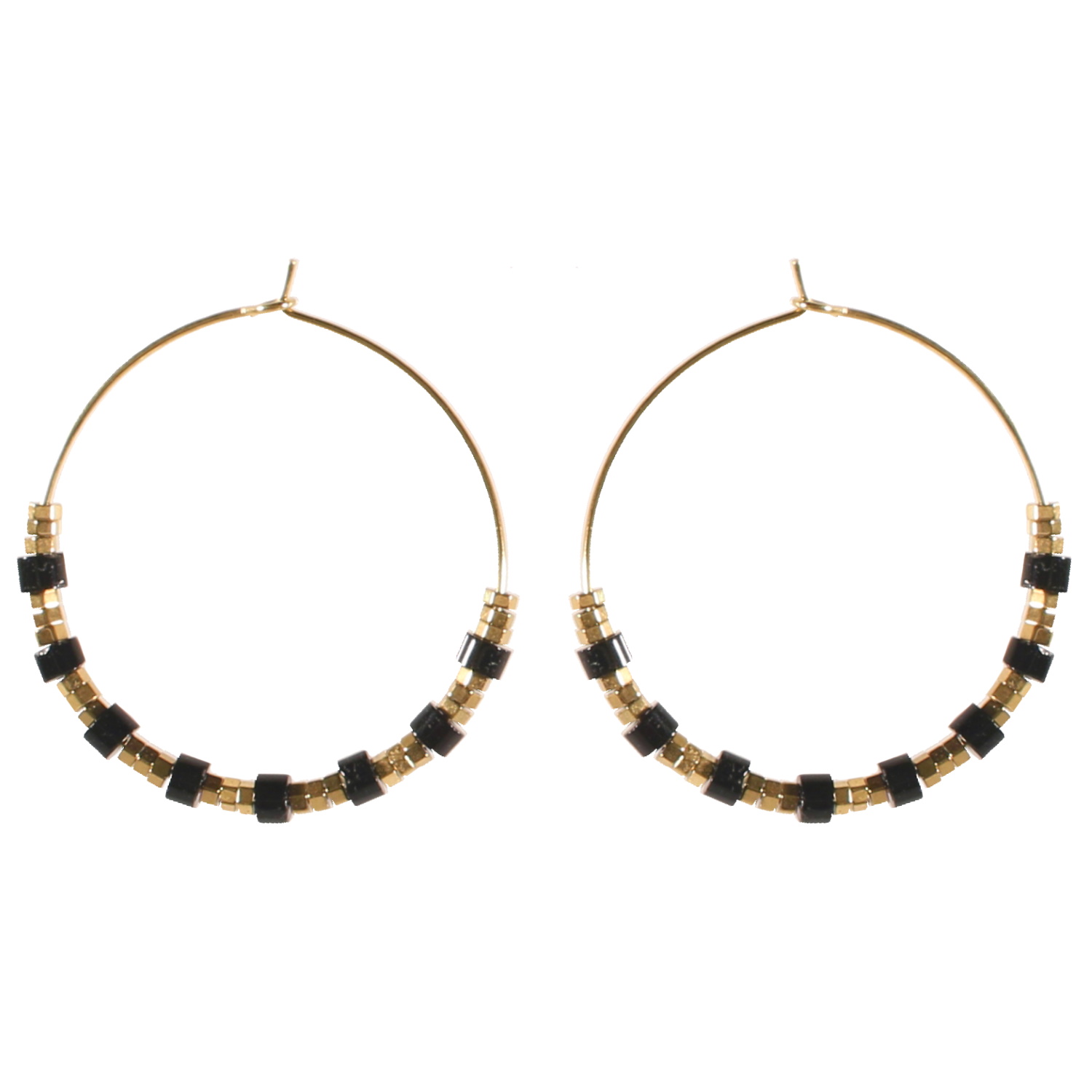 Description Boucles d'oreilles créoles en acier doré surmontées de perles cylindriques dorées et de couleur noire. Largeur 3 mm Diamètre 25 mm [Guide des tailles] Matière(s) Acier , Rocaille . L'acier utilisé dans la bijouterie existe sous plusieurs qualités. Nous utilisons principalement la qualité 316L, qualité qui est utilisée en chirurgie. Cet acier est donc inoxydable et reste très résistant. Fermoir Autre Couleur(s) dominante(s) Doré , Noir Public Adolescent , Adulte . Genre Femme , Fille . Saison Indémodable . Cliquez sur une matière, un thème, une couleur ou une collection pour voir tous les articles associés.