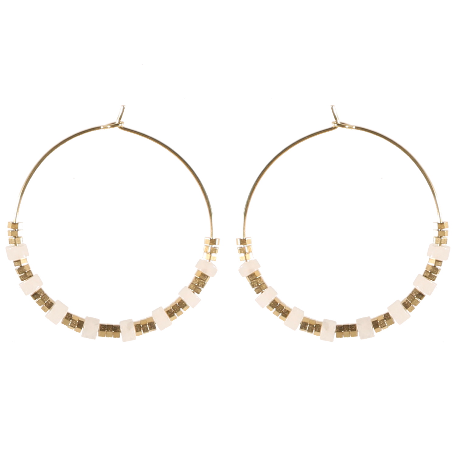 Description Boucles d'oreilles créoles en acier doré surmontées de perles cylindriques dorées et de couleur blanche. Largeur 3 mm Diamètre 25 mm [Guide des tailles] Matière(s) Acier , Rocaille . L'acier utilisé dans la bijouterie existe sous plusieurs qualités. Nous utilisons principalement la qualité 316L, qualité qui est utilisée en chirurgie. Cet acier est donc inoxydable et reste très résistant. Fermoir Autre Couleur(s) dominante(s) Blanc , Doré Public Adolescent , Adulte . Genre Femme , Fille . Saison Indémodable . Cliquez sur une matière, un thème, une couleur ou une collection pour voir tous les articles associés.