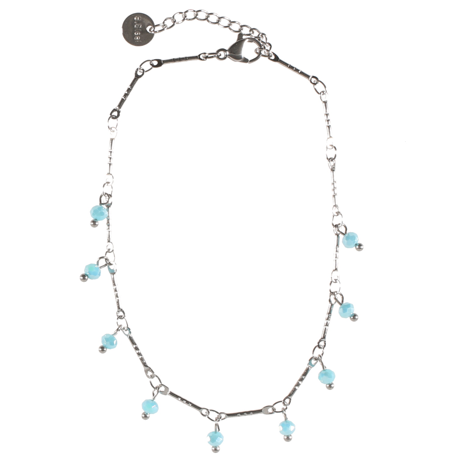 Description Bracelet chaîne de cheville en acier argenté avec pampilles perles bleues. Fermoir mousqueton avec 3 cm de rallonge. Cliquez sur une matière, un thème, une couleur ou une collection pour voir tous les articles associés.