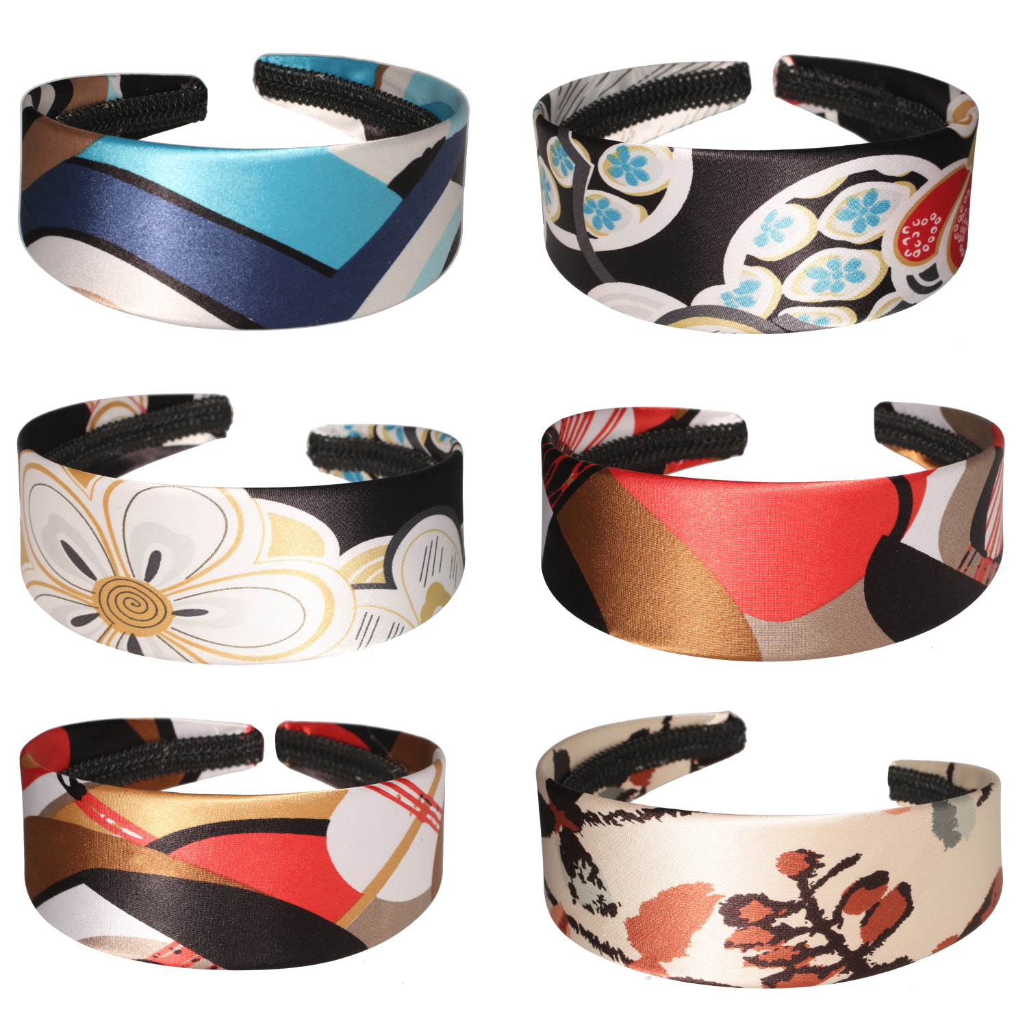 DescriptionSerre-tête pour cheveux recouvert d'un tissu avec divers motifs floraux.
