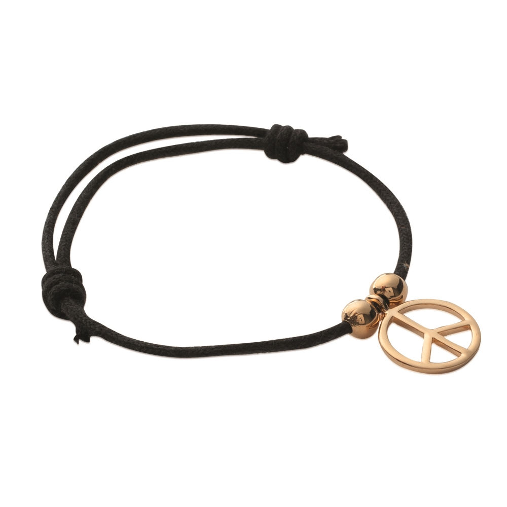 Bracelet en plaqué-or et cordon ciré. Cordon Peace and love Rond  Adulte Enfant Femme Fille Indémodable Symboles