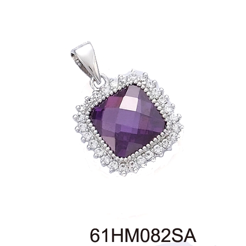 Pendentif en argent 925/000 rhodié, oxyde de zirconium et oxyde d'améthyste.