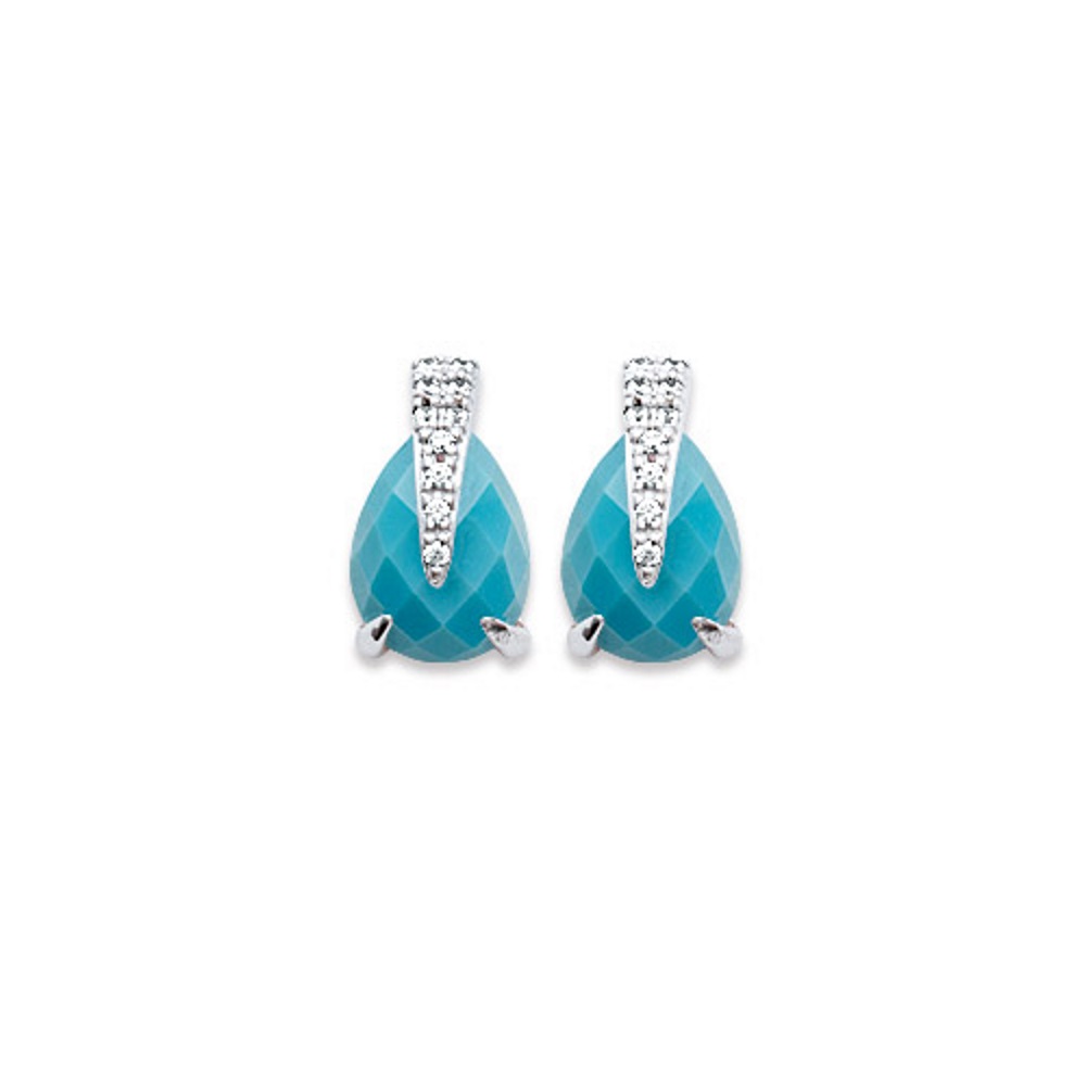 Boucles d'oreilles en argent 925/000 rhodié, oxyde de zirconium et pierre synthétique.