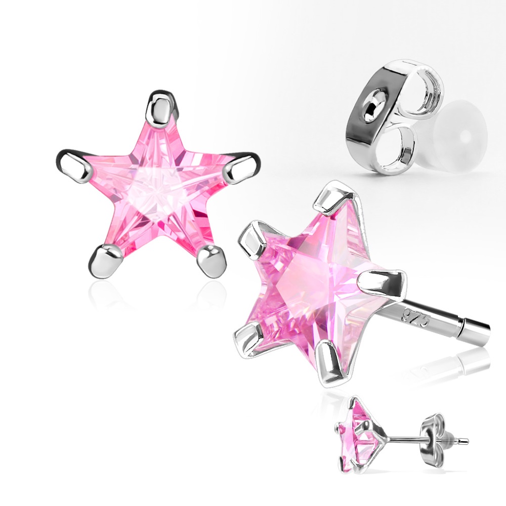 Boucles d'oreilles étoiles en argent 925/000 rhodié et oxyde de zirconium de couleur rose.