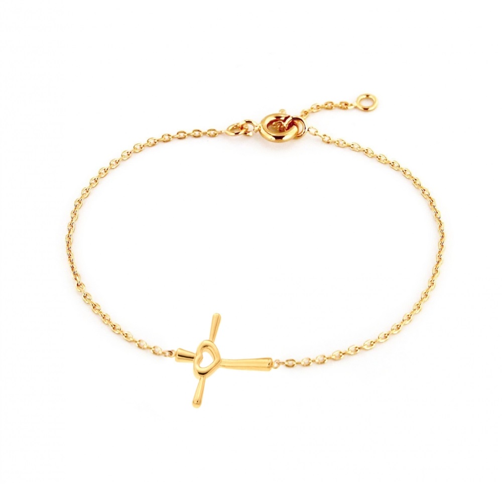 Bracelet avec croix et cœur au centre en plaqué or.