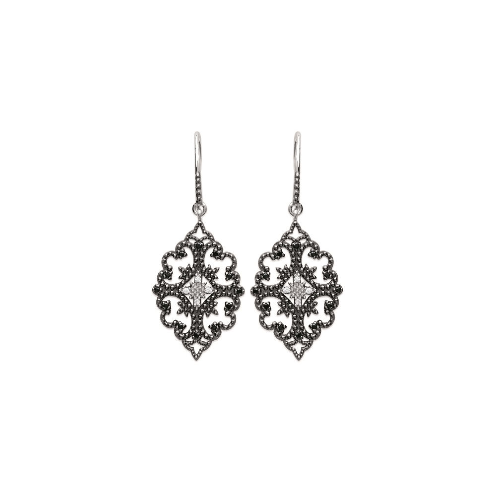 Boucles d'oreilles en argent 925/000 rhodié, oxyde de zirconium et ruthénium.