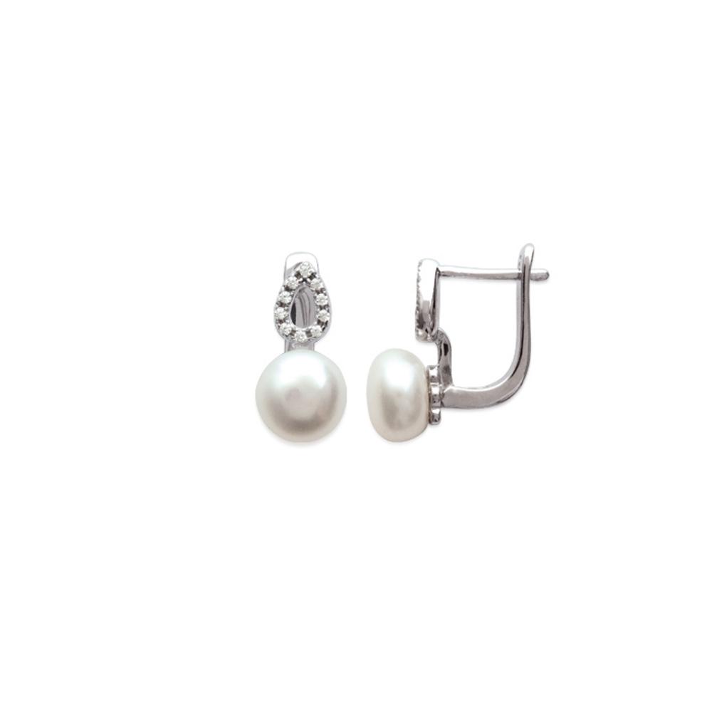 Boucles d'oreilles en argent 925/000 rhodié, oxyde de zirconium et perles d'imitation.
