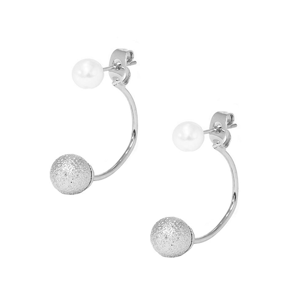Description Boucles d'oreilles fantaisie en métal argenté et perle synthétique. Cliquez sur une matière, un thème, une couleur ou une collection pour voir tous les articles associés.