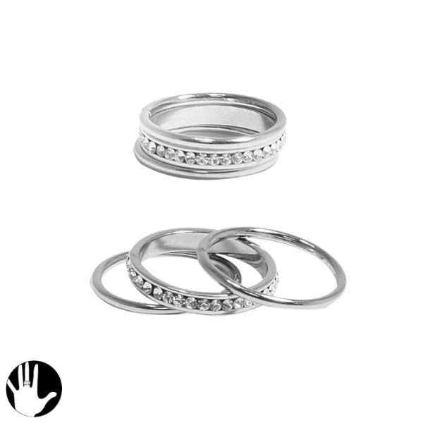 Bague fantaisie en métal argenté et strass.