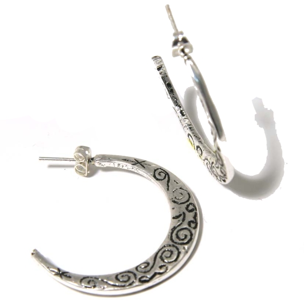 Description Boucles d'oreilles fantaisie créoles en métal argenté vieilli. Cliquez sur une matière, un thème, une couleur ou une collection pour voir tous les articles associés.