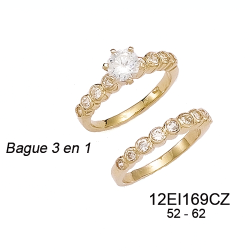 Bague composée d'une alliance et d'un solitaire en plaqué or et oxyde de zirconium.