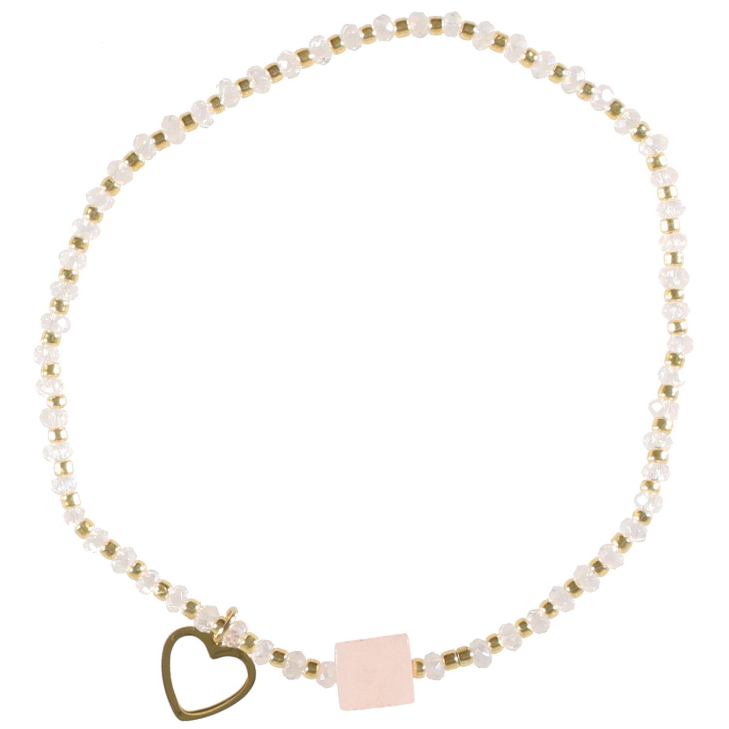 Bracelet élastique avec perles et cœur en acier doré, perles de couleur et pierre cube.