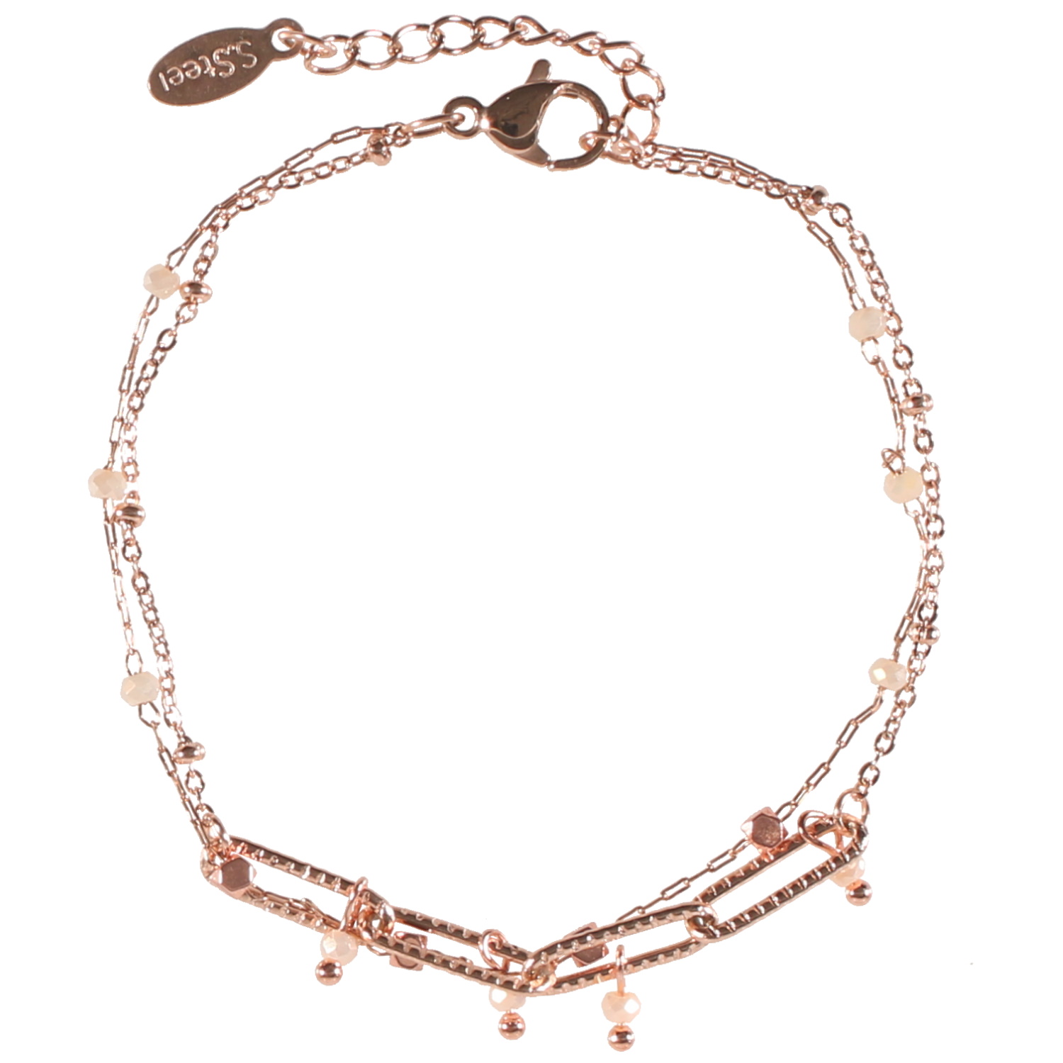 Description Bracelet double rangs composé d'une chaîne avec cubes en acier rosé et perles de couleur blanche et une chaîne avec une partie en maille large en acier rosé et pampilles de perles de couleur blanche. Fermoir mousqueton avec 2.5 cm de rallonge. Longueur 16+2.5 cm [Guide des tailles] Largeur 4 mm Matière(s) Acier , Rocaille . L'acier utilisé dans la bijouterie existe sous plusieurs qualités. Nous utilisons principalement la qualité 316L, qualité qui est utilisée en chirurgie. Cet acier est donc inoxydable et reste très résistant. Fermoir Mousqueton Couleur(s) dominante(s) Blanc , Rose Public Adolescent , Adulte . Genre Femme , Fille . Saison Indémodable . Cliquez sur une matière, un thème, une couleur ou une collection pour voir tous les articles associés.
